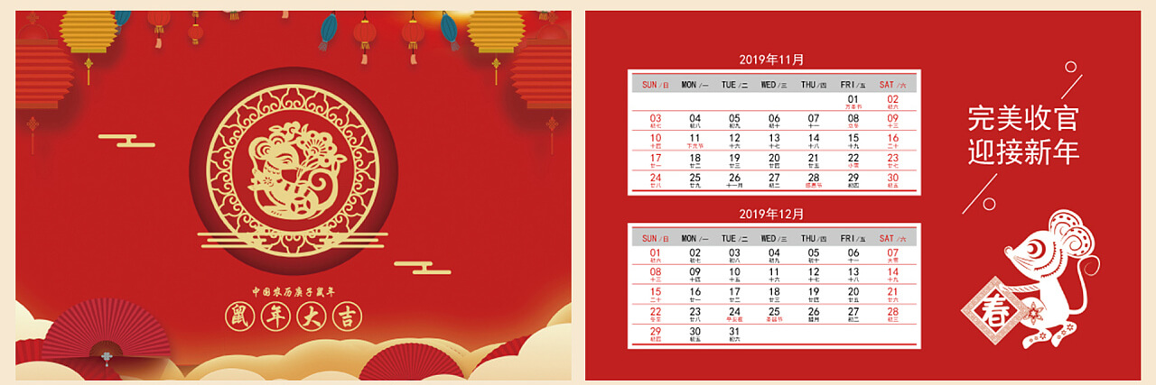 2020年鼠年臺歷設計案例欣賞 紅色系 鼠年大吉
